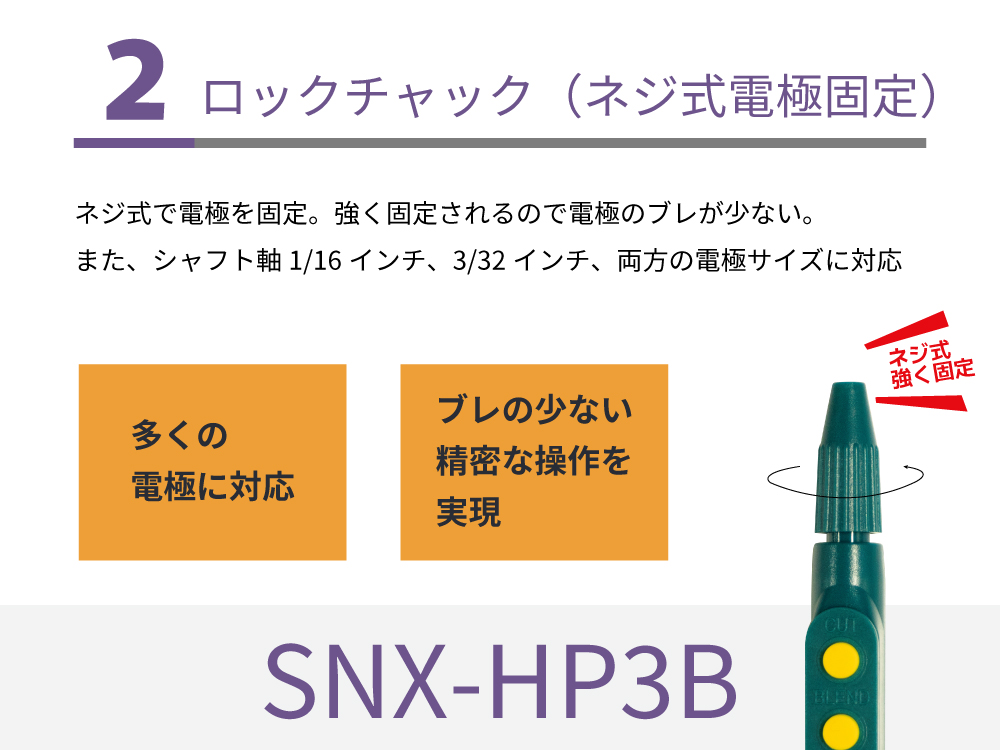 | サイズ | ハンドピースの長さ 115mm 対応電極シャフト軸 1/16インチ、3/32インチ コードの長さ 3.0m |